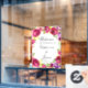 Welcome your wedding guests with this elegant bright pink watercolor floral window cling decorated with beautiful fuchsia and purple flowers. Lovely typography above the roses makes this entrance sign a perfect choice for an elegant garden wedding in the spring or summer.