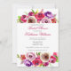 Beautiful bright pink roses decorate this chic bridal shower invitation. The lovely typography is framed by a gorgeous vibrant watercolor fuchsia and purple floral bouquet on both top and bottom. Order these elegant invites for brunch and bubbly or a classic afternoon shower for the bride.