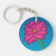 Fuchsia Pink Flower with Blue background Key Ring