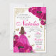 Fuchsia Pink & Gold Floral Quinceanera Birthday Invitation