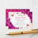 Fuchsia pink gold Quinceanera reception details enclosure cards. Features, script font, gold butterflies, watercolor roses and tiara. Perfect for an elegant princess style glam celebration. Personalize with your own details.