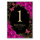 Fuchsia pink gold Quinceanera celebration table number cards. Features, script font, gold butterflies, watercolor roses and tiara. Perfect for an elegant princess style glam celebration. Personalize with your own details. Printed Zazzle invitations or instant download digital printable template.