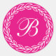 Fuchsia Pink Laurel Wreath with Custom Monogram Classic Round Sticker