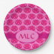 Fuchsia Pink Modern Art Nouveau Damask Monogram Paper Plate