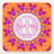Geometric mandala in refreshing orange, bright fuchsia pink and tiny bits of bright blue. Semi transparent white circle in the center for monogram and custom name. Suitable for alternative style wedding, engagement, bridal and couples shower. Looks great on both square and round coasters.