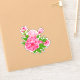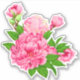 Sticker in a fuchsia pink peonies with green leaves and buds