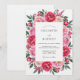 This design features a lush arrangement of vibrant fuchsia and delicate blush pink blooms. Capturing a romantic spring essence, the artwork showcases painterly roses and soft peonies intertwined with deep green foliage. The vibrant magenta color palette creates a sophisticated yet whimsical aesthetic for a classic outdoor affair.