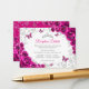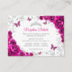 Fuchsia pink silver Quinceanera reception details enclosure cards. Features, script font, silver butterflies, watercolor roses and tiara. Perfect for an elegant princess style glam celebration. Personalize with your own details.