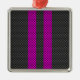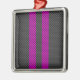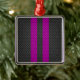 Fuchsia Pink Stripes in Carbon Fibre Style Metal Ornament