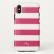Chic personalised case features classic wide stripes in vibrant magenta pink and white, with your name, monogram or favourite phrase in modern script lettering. Preppy design is perfect for adding both style and protection to your phone in a chic fuchsia pink and white colour palette.