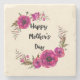 Coasters designed with pretty fuchsia pink poppies and decorative sprigs and leaves in a circular floral wreath. Happy Mother's Day written inside in a cute trendy font. Pretty and elegant. A digital image that was created using watercolor paint.