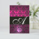 FUCHSIA PURPLE BLACK DAMASK MONOGRAM RSVP white Card