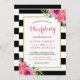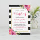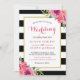 Fuchsia Raspberry Floral Stripes Modern Wedding Invitation