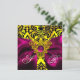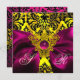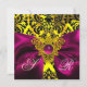 FUCHSIA RIBBON GOLD CELTIC HEART DAMASK MONOGRAM INVITATION