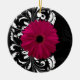 Fuchsia Scroll Gerbera Daisy w/Black and White Ceramic Tree Decoration