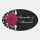 Fuchsia Scroll Gerbera Daisy w/Black and White Oval Sticker