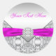 Pretty hot pink fuchsia stickers and envelope seals with elegant diamond fuchsia ribbon on a silver lace background. You can easily customise these elegant hot pink fuchsia stickers for your event by simply adding the text of your choice. This is a printed design.