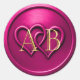Fuchsia Two Hearts Intertwined Monogram Wedding Classic Round Sticker