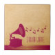Quirky and unique Vintage Gramophone Tile in dark pink featuring a silhouette of an old-fashioned gramophone and a cascade of musical notes on a digital art rendered paper background. This chic decorative tile will add vintage flair to any decor and is perfect for any music lover. Easy to customise, simply personalise with the text of your choosing. Click on the "Customise It" button to find additional personalisation options.
