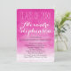 Vibrant, exciting fuchsia bright pink watercolor background with white vertical text and script graduation party invitations. Beautiful artistic representation of feminine girly expressive and artistic colours.