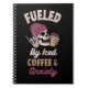 This Notebook features a skull wearing a pink winter hat holding a cup of coffee, with the slogan "Fuelled By Iced Coffee and Anxiety." The quirky and relatable design is perfect for coffee lovers who can relate to the daily struggle of balancing their caffeine intake and anxiety levels. Order now and embrace your unique personality with this edgy and fun design!