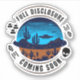 Vintage style graphics of a UFO in the desert. Quote that says, "Full disclosure coming soon."
