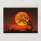 Full Moon and Cat Over Graveyard Postcard