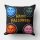 A burst of joyful energy to your spooky decor with this laughing full moon double sided throw pillow the back feature is a giant masterfully detailed full moon caught in a fit of hysterical laughter complete with joyful tears surrounding it are the four elemental moon faces the serene blue the fiery orange, the enigmatic green and the winking pink watching over the celebration
