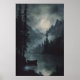Full Moon Mountain Lake Art Dark Woodland Moody Poster