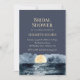 The invitation features a captivating scene where a radiant full moon gracefully rises above a serene body of water. Soft, billowing clouds float in the midnight blue sky, adding a dreamlike quality to the design. The elegant combination of the moon and clouds creates a sense of mystery and anticipation, setting the stage for a truly magical celebration.
