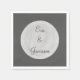 Painting of a full moon on a dark night sky, with a placeholder for names, is printed on paper napkins. Great for evening and/or Halloween weddings.