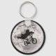 This key ring features a circular design with a striking silhouette of a figure on a bicycle, flying against a large, textured full moon background. The image evokes a sense of adventure and nostalgia, making it a perfect accessory for fans of iconic, cinematic moments or those who love the whimsical feeling of nighttime escapades. The key ring's minimalist black and white design is versatile, suitable for any set of keys, and makes a subtle yet bold statement. It's an ideal gift for movie enthusiasts, cyclists, or anyone who appreciates a blend of classic imagery and modern design