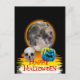 Full Moon, Skull and Blue Pumpkin at Night. Postcard