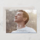 Dramatic full page photo and silver modern typography creates a bold and trendy graduation announcement/invitation. The back of the postcard is a light tan with coffee brown modern typography giving the party details. A perfect photo card to highlight this rite of passage and personal achievement.