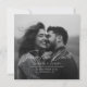 This casual chic wedding save the date card in square format, features a prominent full bleed photo and contemporary set of modern fonts in white. Included in the design is a gradient overlay over the photo for the white text to pop. Additional text area at the back is provided for further personalisation.