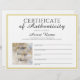 Full Size Certificate of Authenticity Art Photo Custom Letterhead
