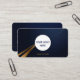 Elegant business card design featuring a rich deep blue background with luxurious gold accents. The front showcases your custom logo and business field, while the back includes a QR code linking to any platform you choose, the phrase “Contact me” for a strong call-to-action, and space for your phone number, email, and website. Perfect for creating a premium and memorable impression.