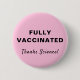 Show your appreciation for medical science and the opportunity be fully vaccinated against covid-19 with this fun pink button with "Fully Vaccinated" and "Thanks Science!" in simple typography and script (and customisable by you).