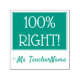 This inspirational rubber stamp design features the motivating feedback message "100% RIGHT!" and a customised tutor's name. It could be used by a school teacher, educator, or tutor when marking assignments, to acknowledge that a student has done well.