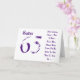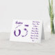 A white background featuring purple text, on this 65th birthday greeting for a sister. My Funny Mind Greetings.