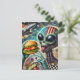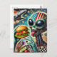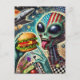 Fun Alien Eating Cheeseburger Encaustic Collage Postcard