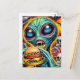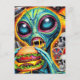 An alien eating a cheeseburger a fun and colourful unique AI generated design