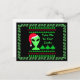 Personalise this unique and unusual funny Christmas postcard for your holiday mailings this year. Take Me To Your Santa! Sure to get noticed, the black background of the postcard sets off the green holly border and the central design with my silly little green man in a Santa hat, while the back has room for your greeting and name.