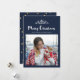 Fun and festive Christmas confetti midnight blue and faux gold photo card.