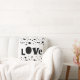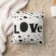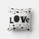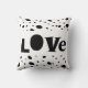 This fun and funky typography love quote accent pillow has bold black and white dot pattern modern chic style for home decor.
