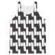 Fun and modern black and white All-Over-Print Tank Top featuring abstract white symmetrical stripes on the black background.