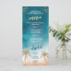 Add a touch of the tropics to your event with this stunning menu card. The teal background is perfectly complemented by a design of golden palm trees, giving it a beautiful beachy feel. Perfect for a beach-themed event or simply to add a touch of warmth and sunshine to any occasion. The menu card is an excellent way to showcase your culinary creations, desserts or drinks. Let your guests know what delights await them.