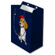 Wonderful fun beagle puppy dog in Santa hat Christmas original art gift bag. Can also add custom text and change background colour when ordering.