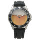 Has heft and feel of expensive stainless steel quartz wrist watches. Solid construction and good looks. Although it had a really top quality rubber strap, I substituted a stainless steel "Shark" style mesh strap, which I think is the most comfortable strap available. Perfect.  True colors of original image.  Clear, crisp image precisely aligned and spaced.