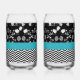 Fun Black and White Two-Print Set w/Aqua Stripe Can Glass